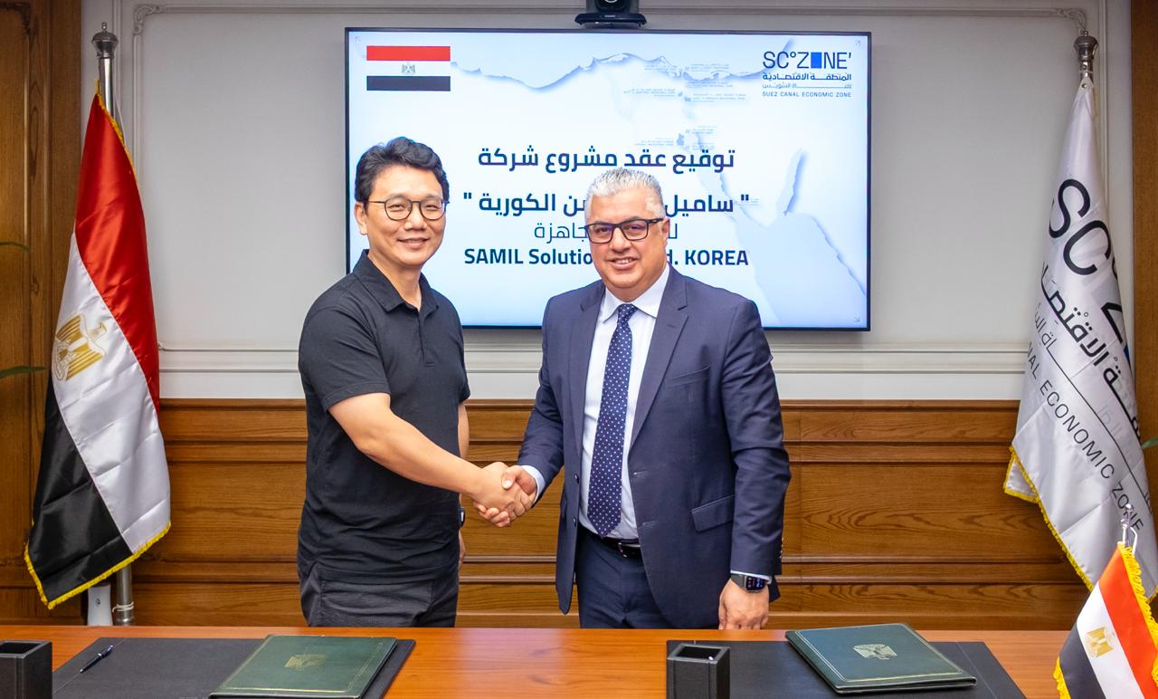 وقّع السيد/ وليد جمال الدين، رئيس الهيئة العامة للمنطقة الاقتصادية لقناة السويس، بمقر الهيئة بالعاصمة الإدارية، عقد مشروع شركة “ساميل سولوشن- Samil Solution Co., Ltd” الكورية، المتخصصة في صناعة الملابس الجاهزة، وذلك لإقامة مشروع جديد بمنطقة القنطرة غرب الصناعية التابعة للهيئة، على مساحة 21 ألف متر مربع، بإجمالي استثمارات قدرها 4.49 مليون دولار أمريكي (تعادل نحو 212 مليون جنيه مصري)، ويستهدف المشروع إنتاج الملابس الجاهزة من التريكو والمنسوجات (Knit & Woven Garments) بطاقة إنتاجية سنوية تبلغ 8.8 مليون قطعة، مع تصدير 100% من الإنتاج إلى الأسواق الخارجية، ومن المقرر أن يوفّر المشروع نحو 1000 فرصة عمل مباشرة، وقد وقّع عن الشركة السيد/ كيم غن وو (Kim Gun Woo)، رئيس مجلس إدارة الشركة.